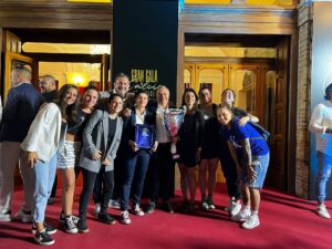 Doppio riconoscimento per l’Es Chieti al Gran Galà del calcio abruzzese, kermesse che ogni anno rende omaggio alle società e agli atleti che si sono maggiormente distinti nel corso della stagione. La cerimonia si è svolta venerdì sera ad Atri nella suggestiva cornice di piazza del Duomo e ha visto la partecipazione dei vertici della Lnd (Lega nazionale dilettanti) e del numero uno della Figc Gabriele Gravina. A ritirare il trofeo del massimo campionato regionale è stato il presidente della società neroverde Pino Bevilacqua, che ha espresso viva soddisfazione: «Questo premio si aggiunge alla Coppa Italia di Serie C e alla coppa disciplina U19, traguardi che giungono a coronamento dei nostri primi 20 anni di storia. È stata una stagione entusiasmante, le nostre ragazze sono state straordinarie, hanno centrato una storica promozione in serie A2, un risultato che ci inorgoglisce e ci consentirà di misurarci per la prima volta in campo nazionale, tra l’altro dopo aver già ben figurato nella Final Four di Coppa disputata ad aprile a Torino».