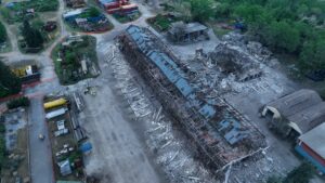 Come programmato, la struttura principale dell’ex Zuccherificio di Chieti Scalo è stata fatta brillare alle prime luci dell’alba, dopo che l’intera area attorno a via Piaggio è stata temporaneamente isolata e presidiata dalle Forze dell’Ordine. L’edificio abbattuto era il più grande tra quelli che costituiscono l’impianto industriale dismesso, oggi di proprietà del veicolo Alitec controllato da Toto Costruzioni Generali, con una superficie al suolo pari a circa 3.900 metri quadrati, lunghezza di 104 metri, altezza massima di circa 25 metri e volume di 65.000 metri cubi. È quanto si legge in un comunicato di Toto Costruzioni Generale. L’abbattimento controllato è stato innescato da una miccia detonante costituita da pentrite, che ha attivato le 1100 microcariche posizionate sui 130 pilastri portanti, con una velocità di detonazione di circa 8400 m al secondo, pari a circa 30.000 km/h.  In poco più di un secondo le parti murarie ed in cemento armato dell’edificio sono collassate, rivelando lo scheletro metallico sottostante, mentre alcuni cannoni ad acqua hanno mitigato l’impatto delle polveri sollevate. L’abbattimento controllato con microcariche ha richiesto la scrupolosa redazione di un piano di demolizione molto specialistico, per garantire la sicurezza sia per gli addetti ai lavori sia per gli altri edifici dell’ex complesso industriale non interessati dall’intervento. Ispezioni approfondite e campionature eseguite nei giorni precedenti hanno escluso la presenza di sostanze nocive, come l’amianto, e sono stati installati sette sismografi per monitorare l’effetto sul vicino gasdotto Snam ed il disturbo sugli edifici di via Piaggio e sulle strutture superstiti dello stabilimento. Nell’area del dismesso complesso industriale sono infatti ubicati altri edifici, anche a pochi metri di distanza, che non hanno subito alcun danno. La struttura metallica posta all’interno dell’edificio oggetto dell’intervento verrà demolita mediante bracci meccanici muniti di cesoie dai tecnici specializzati del Gruppo Toto. Presso il Servizio gestione Rifiuti della Regione è stata intanto attivata la campagna per il recupero dei rifiuti di demolizione, che saranno selezionati ed avviati al recupero, con successivo reimpiego come “materie prime seconde”, nel rispetto delle normative ambientali. L’edificio era il cuore dello stabilimento per la produzione di zucchero estratto dalla lavorazione della barbabietola e venne realizzato nell’immediato secondo dopoguerra dal gruppo nazionale Eridania, che ha cessato l’attività al principio degli anni Settanta. La demolizione di oggi apre il campo ad ipotesi progettuali finalizzate alla riqualificazione dell’area, per i quali il Gruppo Toto ha in corso le necessarie analisi di fattibilità.