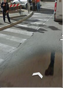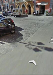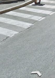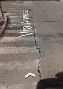 In corrispondenza della “crepa” c’è una linea di demarcazione tra l’asfalto e i sanpietrini.