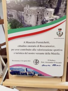 “A Maurizio Formichetti, cittadino onorario di Roccamorice, per aver contribuito alla valorizzazione sportiva e turistica del nostro versante della Maiella”. Questa la motivazione del riconoscimento conferito dal Comune montano del Pescarese a Mauro Vegni, direttore del Giro d’Italia, e a Maurizio Formichetti referente abruzzese di Rcs (Gazzetta dello Sport) che organizza la corsa rosa. Il Giro attraverserà Roccamorice in occasione del tappone appenninico Isernia-Blockhaus in calendario domenica 15 maggio.
