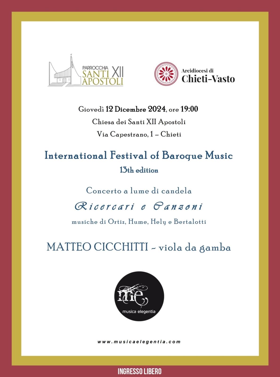 Giovedì 12 Dicembre in programma il concerto di beneficenza nella Chiesa dei Santi XII Apostoli
