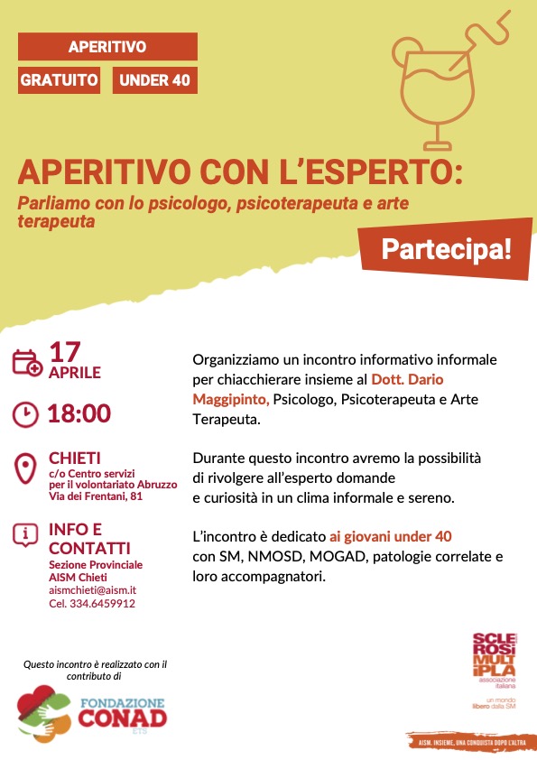 Chieti, al via un ciclo di incontri gratuiti per giovani con sclerosi multipla: “Aperitivo con l’esperto”