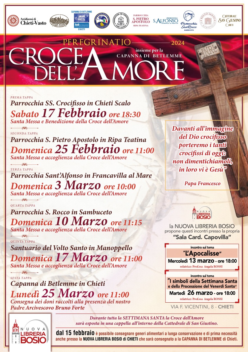 Il 20 febbraio alle ore 17.00 presso la Sala Cascella della Camera di Commercio di Chieti, p.zza G.B. Vico l’Associazione ArteMind in collaborazione con l’Ufficio Turismo e tempo libero dell’Arcidiocesi di Chieti organizza il convegno HOMO VIATOR PEREGRINUS. Dopo i saluti istituzionali delle autorità, Angela Rossi, che cura la direzione scientifica della tavola rotonda, illustrerà il progetto editoriale sulle vie di pellegrinaggio dall’antichità a oggi, sostenuto dall’Associazione ArteMind, che si occupa di promozione culturale e territoriale abruzzese. Il saggio verrà pubblicato a breve dalla Casa Editrice Sigraf in occasione del prossimo Giubileo previsto per il 2025, il cui tema principale sarà appunto -Pellegrini di speranza-. L’incontro, moderato dal Prof. Massimo Pasqualone, vedrà la partecipazione di Don Gilberto Ruzzi, responsabile dell’Ufficio catechistico regionale, che illustrerà l’iconografia del pellegrino, di Don Claudio Pellegrini, che parlerà della Chiesa della SS. Trinità e i pellegrini, di cui è parroco. Interverranno Daniele Palumbo, Presidente della Cooperativa Ripa Rossa e di Maia Ambiente, che si soffermerà sul Sentiero dello Spirito, Dina Cespa, Presidente dell’Associazione del Cammino di San Tommaso, John Forcone del Parco della Maiella, responsabile del Cammino Grande di Celestino, Luciano Caramanico e l’Arch. Vincenzo Cerritelli, che esporranno le tappe del Cammino della Pace e Simone D’Angelo, Presidente ENDAS Abruzzo-che