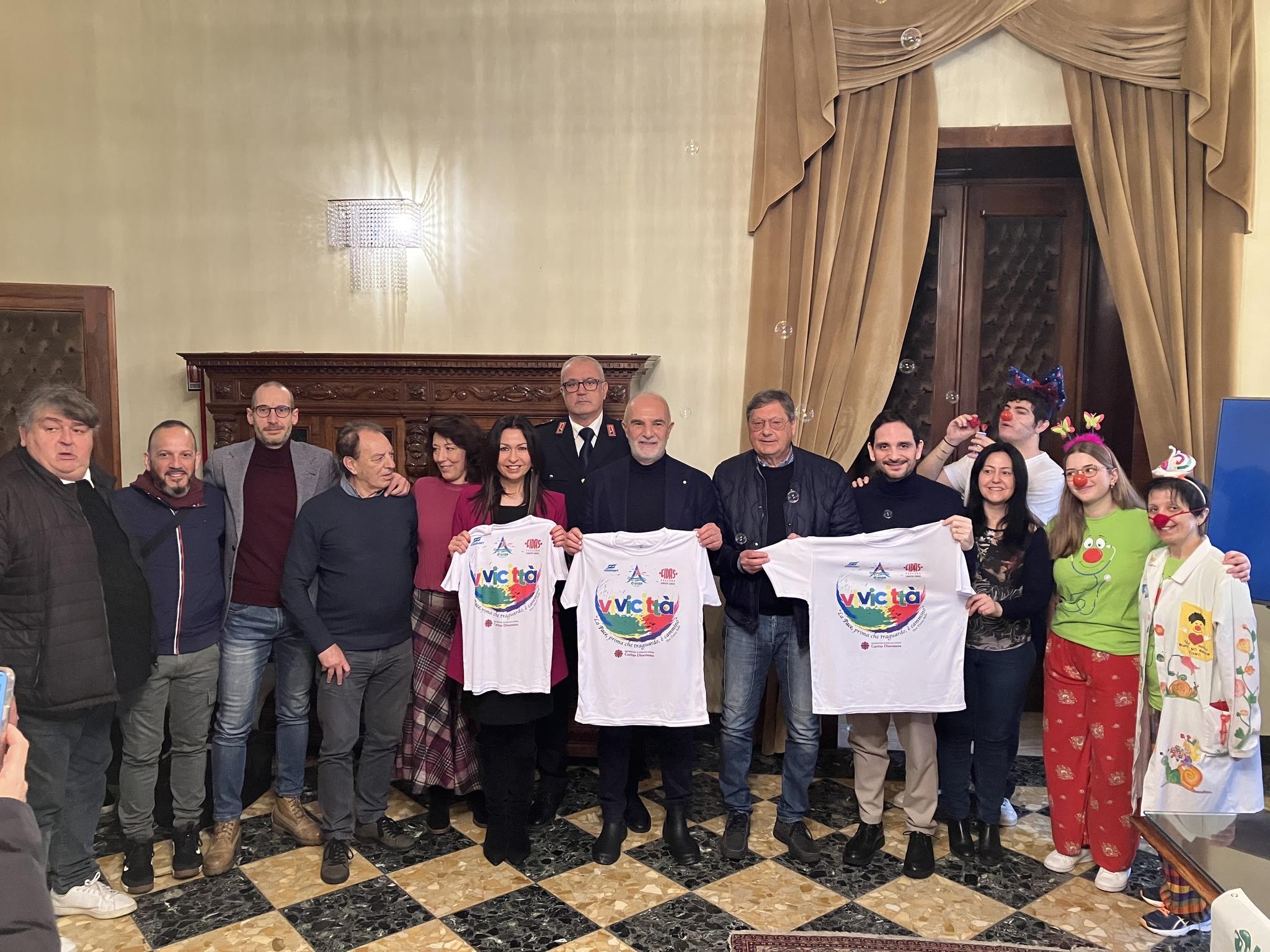 Come maglia celebrativa, è stata realizzata una t-shirt per i partecipanti adulti con la frase di don Tonino Bello: “La pace, prima che traguardo è cammino”.