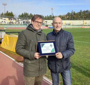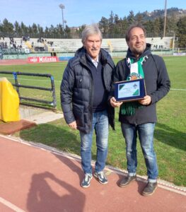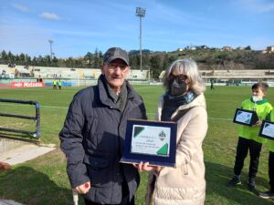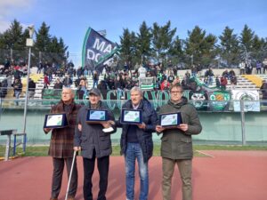 Il Comitato per la terza volta ha premiato quattro neroverdi del passato. Il presidente Stefano Marchionno intende ripetere l’iniziativa in occasione di tutte le gare casalinghe dell’anno 2022. Vittorio Di Luzio e Giancarlo Bianchini, Anni 60, Stefano Anelli, Anni 70, e Fabio Fiaschi, Anni 90, sono stati gli omaggiati di oggi. Le targhe sono state loro consegnate da quattro componenti del Comitato: Maria Antonietta Mennucci, Franco Zappacosta, Stefano Marchionno e Lello Di Vito.