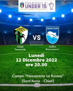 Under 15. Chieti-Delfini Biancazzurri Pescara lunedì ore 20 Campo “Nazzareno La Rovere” Sant’Anna, Chieti