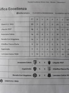 Speranze (e preghiere) ascoltate. Avezzano-L’Aquila è finita in parità (1-1) e domenica prossima il Chieti in caso di vittoria sull’Avezzano allo stadio Angelini (aperto ai tifosi fino a 1.000 unità) potrà festeggiare il ritorno in serie D. Perchè a quel punto con un vantaggio di 7 punti sull’Aquila, a due giornate dalla conclusione del minitorneo, la promozione avrà il sigillo della certezza aritmetica. Ma guai a pensare che il raggiungimento del traguardo sia già cosa fatta, un esito scontato, magari sottovalutando un avversario, l’Avezzano, che oggi contro l’Aquila ha mostrato di avere ancora tante energie e uno smisurato orgoglio. La squadra è forte e va affrontata con mille cautele, senza distrazioni, anzi. Sicuramente da domani, alla ripresa degli allenamenti, l’allenatore Lucarelli batterà fino allo sfinimento su questo tasto, per entrare nella testa dei suoi uomini e ottenere la sicurezza che nessun giocatore neroverde penserà a una trionfale passerella. La festa, soltanto alla fine, se arriveranno i tre punti. Intanto spumante in frigo…