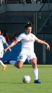 Il Chieti Calcio femminile passa a Crotone (0-2) con un gol per tempo. Vantaggio di Giulia Di Camillo (foto a sinistra) con un tiro imparabile al 24′,una vera prodezza, nulla da fare per il portiere rossoblù Valentina Zangari. Il raddoppio è giunto nei minuti di recupero grazie a un bel diagonale di Marija Vukcevic (foto a destra). Pronostico rispettato, le ragazze neroverdi hanno conquistato l’atteso successo sul campo della squadra ultima in classifica che però ha tenacemente contrastato il gioco del più quotato avversario. (Foto di Andrea Milazzo)