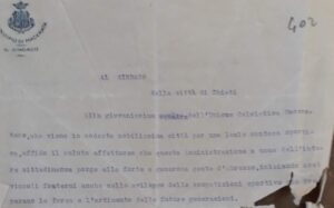 Di suo pugno, il 19 gennaio 1924, il Sindaco di Chieti scriveva in risposta: “Le sono grato delle gentili espressioni contenute nel suo foglio di ieri. La nostra Chieti ha ammirato la balda schiera dei giovani di codesta illustre città che….. nel cimento, hanno dato prova di questa nobiltà d’animo e di perfetta educazione. Io ebbi a porgere a ciascuno di essi il più cordiale saluto”. L’obbligo deo “voi” arriverà in seguito…