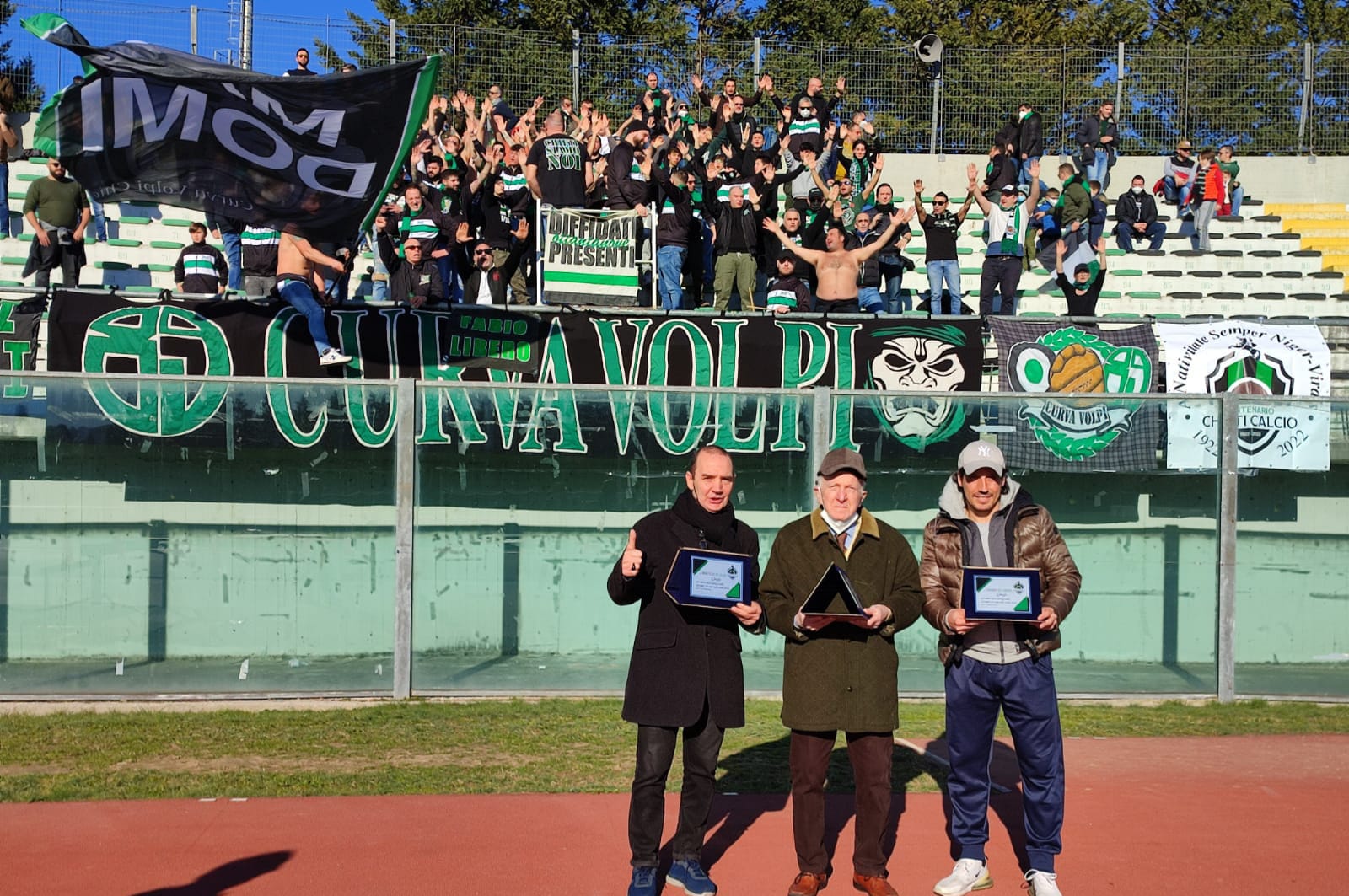 Prima del via il Comitato per il Centenario ha omaggiato tre ex calciatori del Chieti: Tonino Salvatore (classe 1932), uno dei grandi vecchi neroverdi, Marcello De Iuliis e Federico Del Grosso, che ora allena proprio il Nereto. Sono iniziative che il Comitato intende replicare in ogni match casalingo per celebrare il Centenario.