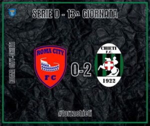 Dopo due sconfitte consecutive Mauro Chianese (espulso per aver reagito agli insulti dei tifosi romani) ha ottenuto la prima vittoria della sua gestione (0-2). Il Chieti ha reagito in un momento particolarmente difficile ed ha colto il terzo successo esterno (contro l due conquistati allo stadio Angelini). Marcatori nella ripresa Cesario (quarto gol in maglia neroverde, bello il suo diagonale) e Bregasi. Il Roma City, ultimo in classifica, ha confermato la propria scarsa consistenza ma recentemente ha inserito giocatori importanti (ultimo l’attaccante Stefano Napoleoni) evidentemente i miglioramenti tardano. La squadra neroverde ha disputato un mediocre primo tempo, con uno, forse due tiri nello specchio della porta. Più determinata nella ripresa, più convinta e finalmente è emersa quella concretezza nelle finalizzazioni troppo spesso mancata. Ultima annotazione: oggi abbiamo apprezzato almeno tre buoni interventi di Francesco Serra, il portiere.