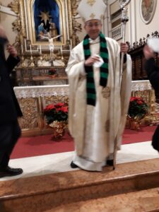 L’arcivescovo con sciarpa neroverde dopo la Messa di sabato