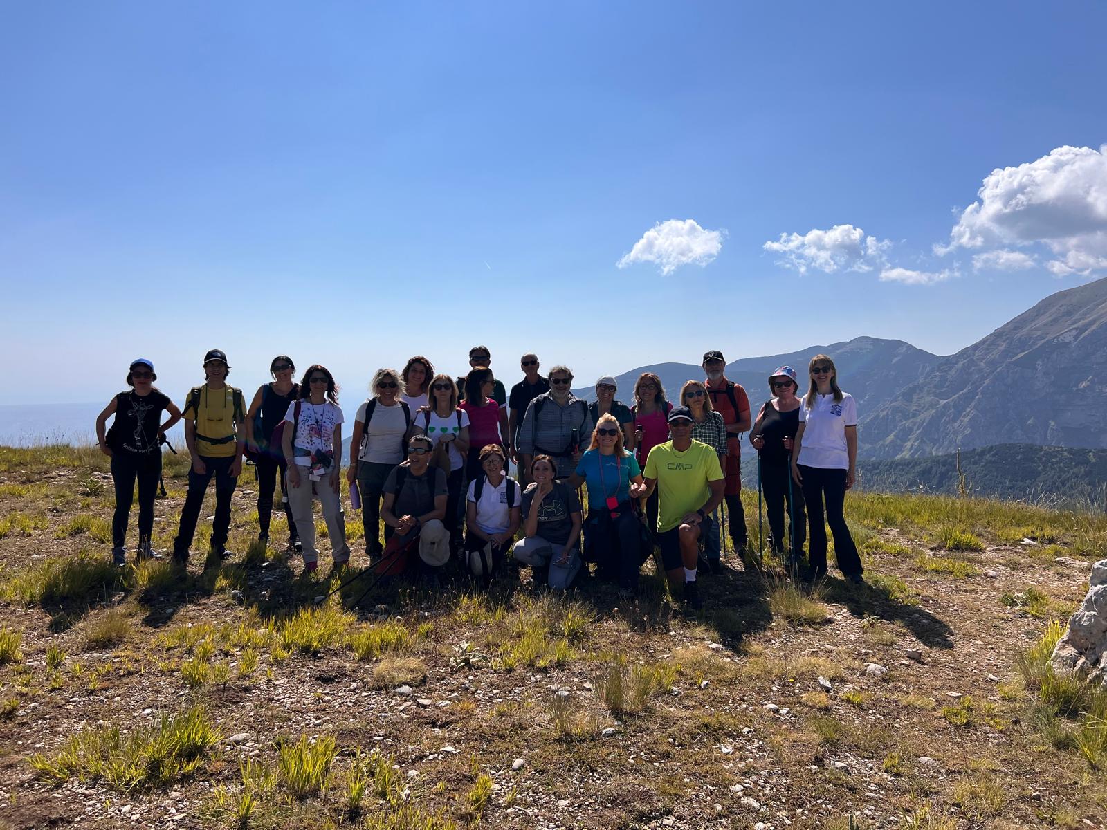 Anche quest’anno il Parco della Maiella è stato l’itinerario scelto da una rappresentanza di docenti, educatori e personale ata, con alcuni familiari al seguito, del Convitto Nazionale G.B.Vico di Chieti, a cui ha partecipato anche il Rettore Dirigente Scolastico Paola Di Renzo martedì 6 Agosto. A fare da guida ufficiale del Parco Nazionale della Maiella è stato il professore Nunzio Mezzanotte, docente del Convitto, che è riuscito ad ammaliare il gruppo con le storie e gli aneddoti della Maiella, passando dai racconti sulla transumanza, attraverso le storie dei briganti d’ Abruzzo, alle vicende dei lupi, degli orsi, dei camosci, fino alle minuziose spiegazioni del verdeggiante pino mugo, presente lungo tutto il percorso scelto per arrivare alla meta prefissa. Con partenza alle 9.30 dal Rifugio Bruno Pomilio e dopo aver percorso la strada dedicata ad Indro Montanelli ed Elio Porreca, vera e propria porta d’ingresso del Parco Nazionale della Maiella, il gruppo ha raggiunto la Madonnina della Neve ed imboccato il sentiero che contorna il Monte Block Haus. Straordinari spazi infiniti tra le valli della Maiella e altre vette, fitta vegetazione, farfalle colorate e sentieri antichi hanno fatto da cornice al tragitto. Al termine dell’escursione i partecipanti si sono riuniti presso lo storico albergo Mammarosa per vivere un momento conviviale e gustare le pietanze della tradizione gastronomica locale. Un brindisi da parte del professore Mezzanotte per ringraziare tutti i presenti, in particolare il Rettore con dei versi in rima dedicati alla sua amata Maiella. Il brindisi non poteva che concludersi con una frase divenuta classica: ” Viva la squadra del Convitto G.B.Vico”.