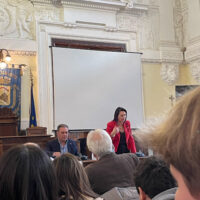 In un secondo momento alcuni alunni della nostra classe hanno rivolto delle domande ai due ospiti di eccellenza della giornata, il dott. Marino Micich, Presidente dell’Associazione per la Cultura Fiumana Istriana e Dalmata nel Lazio e Direttore dell’Archivio-Museo storico di Fiume con sede a Roma, esule di seconda generazione e la Prof.ssa Donatella Bracali, presidente del Comitato provinciale di Pescara dell’Associazione Nazionale Venezia Giulia e Dalmazia, esule di seconda generazione che hanno raccontato la loro personale esperienza. Poi si è aperto il dibattito sulle domande poste da alunni di altre scuole e dallo stesso pubblico presente in sala. Moderatore è stato il Dott. Stanislao Liberatore, giornalista. La presentazione è stata fatta dalla Prof.ssa Marilisa Palazzone che ha curato tutto il progetto e ci ha guidati nel loro lavoro. La giornata si è conclusa con un intervento molto sentito della Prof.ssa Emilia Galanti, Dirigente Scolastico del nostro Comprensivo.