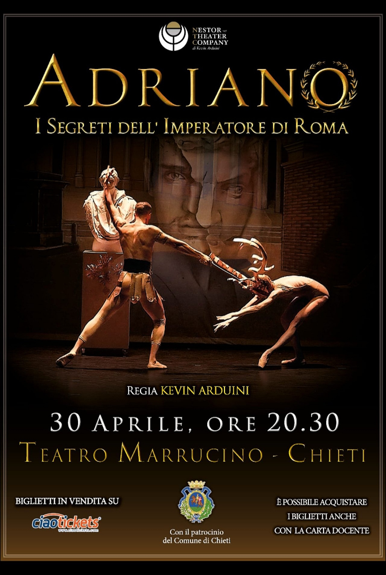 Al centro del nuovo appuntamento c’è uno spettacolo che intreccia storia e suggestione artistica, capace di riportare al pubblico il fascino della grandezza romana. Vincitore del bando Cultura della Regione Lazio, il lavoro ha già registrato un sold out nell’ottobre 2025 al Teatro Quirino Vittorio Gassman, ottenendo ampi consensi da pubblico e critica. L’appuntamento è fissato per il 30 aprile 2026 alle ore 20:30, quando andrà in scena “Adriano – I segreti dell’Imperatore di Roma”, dedicato alla figura di Adriano. Regia e coreografie portano la firma dello stesso Arduini, considerato tra le voci emergenti più dinamiche del panorama teatrale italiano.