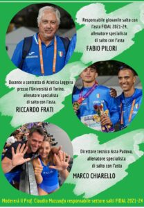 Marco Chiarello, affermati tecnici specialisti del salto con l’asta. Coordinerà i lavori il Prof. Claudio Mazzaufo, responsabile nazionale del settore salti.