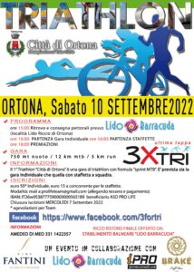Ancora movimento in seno alla Pro Life Racing Team con il trinomio nuoto, mountain bike e corsa a piedi: per dare modo di rendere più viva la conclusione del circuito 3-For-Tri, ecco in calendario sabato 10 settembre a Lido Riccio il Triathlon Città di Ortona con il patrocinio dell’omonima amministrazione comunale e sotto l’egida della Uisp Settore di Attività Abruzzo e Molise.