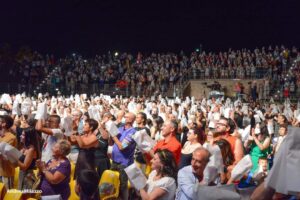 La serata di divertimento e magia all’anfiteatro della Civitella di Chieti di sabato sera è stato lo spettacolo più atteso e gradito dell’estate teatina. ILLUSION è stato un grande successo di pubblico e di consensi ovunque in città e da fuori regione. Centinaia di messaggi di stima hanno invaso i social e le chat degli organizzatori. Numeri importanti alla Civitella dove lo spettacolo realizzato dalla Associazione La Forza Dei Diritti, con il Presidente Remo Stampone, ha riportato il sold out con oltre 2500 spettatori, venuti anche da fuori regione e qualcuno dall’estero. Mattatori della serata il duo comico dei Panpers insieme alle incursioni sceniche del poliedrico artista Didi Mazzilli che a metà spettacolo ha fatto nevicare sulla Civitella, il pubblico ha accartocciato palle di carta ed ha iniziato a lanciare in aria nel divertimento e tripudio più totale suscitando grande divertimento e trasporto di grandi e piccini ma anche degli addetti ai lavori. Straordinario il campione belga di Mentalismo Aaron Crow che ha portato sul palco alcuni spettatori tra cui il sindaco di Chieti Diego Ferrara e signora, resi protagonisti in un gioco mozzafiato dove l’artista bendato in una sorta di roulette russa centrava con una balestra al laser l’anello nuziale nascosto in una mela della consorte del primo cittadino.Bellissime le gag del mago romano Raffaello Corti che ha saputo coinvolgere il pubblico con i suoi giochi generando risate e divertimento a non finire ; di elevata qualità e raffinata classe le performance dei Dusguido, una coppia di artisti che hanno ripercorso la storia del cinema con trenta rappresentazioni dei più grandi successi cinematografici. Altro grande nome Samuel campione di ventriloquia che ha invitato sul palco due spettatori, creando un duetto davvero esilarante. La ciliegina sulla torta sono state le illusioni del teatino Ottavio Belli che addirittura ha effettuato un gioco di escapologia alla Houdini, fuggendo dal suo Red Scorpion, uno scorpione gigante di acciaio, prima di essere tagliato a metà. L’apice di emotività e commozione è stato raggiunto da tutto l’anfiteatro quando Ottavio Belli in ginocchio ha chiesto alla sua compagna di vita e di spettacolo Claudia Veneziano. “Da quando sei entrata nella mia vita mi hai reso un uomo e un mago migliore” – le ha detto mentre la giovane artista si congedava tra gli applausi. “Aspetta…Claudia mi vuoi sposare? “. Gli organizzatori Remo Stampone, Fabiana Desiderio, Sandro Calzolari, come rappresentanti della Associazione La Forza Dei Diritti, sono soddisfattissimi per il lavoro fatto. “Siamo davvero contenti perché è stata una organizzazione perfetta e si è visto. La città ha risposto alla grande, la tre giorni di artisti dei buskers è andata benissimo, nel centro storico complessivamente abbiamo registrato un paio di decine di migliaia di persone dalla sera fino a notte, cioè negli ultimi spettacoli a mezzanotte inoltrata c’erano ancora decine di centinaia di persone che affollavano Chieti dal corso Marrucino alla Villa Comunale. Hanno lavorato tantissimo tutte le attività commerciali della città, bar, ristoranti, pizzerie, bad e breakfast e gli hotel hanno registrato il pieno, e questo ci riempie di orgoglio e soddisfazione non solo per il divertimento offerto ma anche con uno sguardo importante all’economia cittadina. Soprattutto vorremmo porre l’accento sul fatto che parte del ricavato della manifestazione insieme alla vendita dei biglietti della lotteria, in corso in città in questi giorni e fino a Settembre, quando ci sarà l’estrazione dei premi, concorrera’ a sostenere i progetti dei bambini affetti da malattie rare e da diabete, in collaborazione con le Associazioni Inclusiamo e ABCDEF. ” Chiosano gli organizzatori, non possiamo che ringraziare tutti quelli che ci sono stati vicini, gli Artisti, Ottavio Belli in primis, artista di elevato spessore professionale, gli Sponsor, le Associazioni che hanno collaborato con noi, i tecnici tutti insieme agli operatori di ripresa e ai fotografi, tutti proprio tutti dello staff, la città di Chieti, e tutti gli spettatori accorsi da fuori città e regione che hanno creduto in noi. Appuntamento all’anno prossimo.
