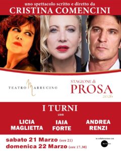Arriva sul palco del Teatro Marrucino lo spettacolo I Turni, raffinata e dolceamara commedia scritta e diretta daCristina Comencini, tra le più autorevoli voci del cinema e del teatro italiani. L’appuntamento è fissato per sabato 21 marzo alle ore 21, con replica domenica 22 marzo alle ore 17.30, all’interno della Stagione di Prosa diretta dal maestro Davide Cavuti. La regista, nota anche per il film La bestia nel cuore, candidato al Premio Oscar nel 2006, porta in scena una storia familiare intensa e ironica, affidata a tre interpreti di primo piano del panorama teatrale italiano: Iaia Forte, Licia Maglietta e Andrea Renzi. Le scenografie sono firmate da Paola Comencini, i costumi da Chiara Ferrantini e il disegno luci da Luigi Saccomandi.