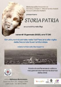 Quindi si soffermerà sull’insediamento delle industrie chimiche ed elettrochimiche nella vallata del Pescara e di importanti industrie idroelettriche, tessili, alimentari e meccaniche nella vallata di Chieti Scalo che fecero la storia di questa parte della città sino alla seconda guerra mondiale.