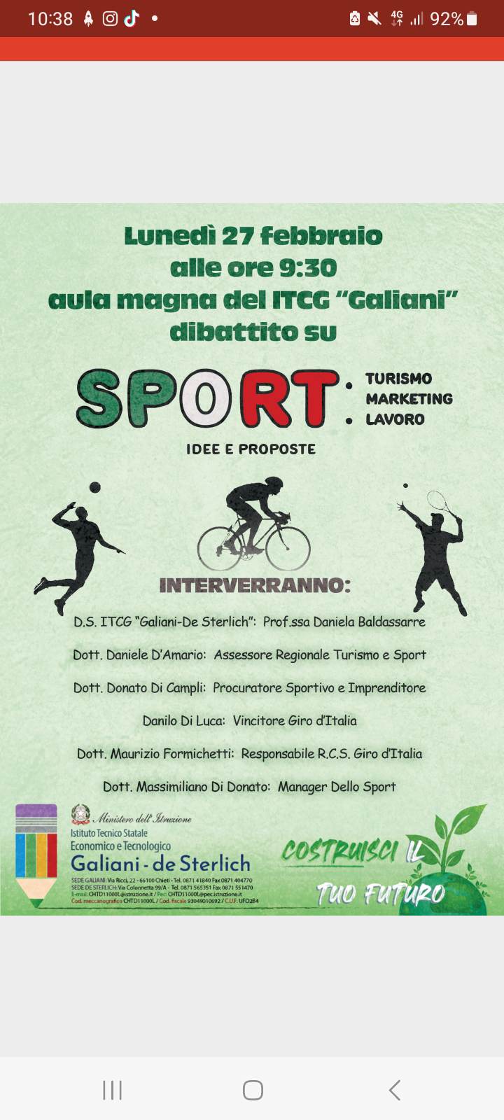 “Sport turismo marketing e lavoro”, dibattito all’Itcg Galiani