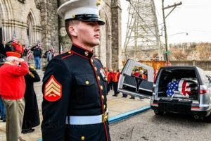 Il 17 aprile 1942, Joseph si arruolò nella “Marine Corps Reserve” a Philadelphia. Completò l’addestramento a “Parris Island” e fu poi di stanza alla “Marine Corps Base Quantico” e a “Camp Elliott” prima di partireda San Diego destinazione il Teatro di Guerra del Pacifico. All’inizio Joseph Boschetti fu nella “Battaglia di Guadalcanal”. Successivamente fu inviato, insieme ai suoi Marine, a Wellington, in Nuova Zelanda, in attesa di conoscere la prossima missione. Dopo poco con la “Company A”, “1st Battalion, “18th Marine Regiment”, “2nd Marine Division” prese parte alla “Battle of Tarawa “ (“battaglia di Tarawa”) che si combatté tra il 20 e il 23 novembre 1943 sull’isola di Betio, compresa nell’atollo di Tarawa delle isole Gilbert. Vide contrapposte le forze della Marina imperiale giapponese a quelle dei marines statunitensi, che conquistarono l’isola dopo feroci combattimenti. Era il 20 novembre 1943 quando il giovane “Joe” – appena 23enne – morì. Secondo quanto riferito, fu presto sepolto in un cimitero, in seguito designato “Cemetery 26” sull’isola di Betio – un luogo temporaneo scelto dai suoi commilitoni, i sopravvissuti alla battaglia, in attesa che i Caduti potessero essere recuperati e restituiti alle loro famiglie. Per il suo servizio e sacrificio la famiglia di “Joe” accettò la “Purple Heart” e la “Presidential Unit Citation”. Nonostante le pesanti perdite subite dalle forze americane, il successo militare nella “battaglia di Tarawa” fu un’enorme vittoria per l’esercito americano, perché le Isole Gilbert fornirono alla Flotta del Pacifico della Marina americana una piattaforma da cui lanciare gli assalti alle Isole Marshall e Caroline per far avanzare la campagna del Pacifico centrale contro il Giappone. Subito dopo i combattimenti di Tarawa, i membri del servizio americano morti in battaglia furono sepolti in diversi cimiteri dell’isola. Secondo quanto riferito, Joseph fu sepolto nel “Cemetery 26”. Tuttavia, quando la “604a Quartermaster Graves Registration Company” condusse le operazioni di recupero dei resti su Betio tra il 1946 e il 1947, i resti di Joseph non furono identificati. Tutti i resti trovati su Tarawa furono inviati al Laboratorio centrale di identificazione di Schofield Barracks per l’identificazione nel 1947. Nel 1949, i resti che non erano stati identificati furono inumati come “Sconosciuti” nel “National Memorial Cemetery of the Pacific”. Il giorno del ringraziamento del 2014, Jennifer Morrison, una genealogista forense volontaria indipendente, ha trovato il fratellino di Joseph, Russ – che ora ha 81 anni – e lo ha messo in contatto con la SeziNel 2014 la “History Flight” identificò il “Cemetery 26” dove si riteneva che Boschetti fosse stato originariamente sepolto, alcuni resti recuperati al laboratorio della “Defense POW/MIA Accounting Agency” per l’esame. Il 29 luglio 2019, la “Defense POW/MIA Accounting Agency” identificò i resti di Joseph Francis Boschetti. Gli scienziati della “Defense POW/MIA Accounting Agency” si avvalserro di analisi antropologiche, nonché di prove circostanziali e materiali. Inoltre, gli scienziati della “Armed Forces Medical Examiner System” utilizzarono l’analisi del DNA mitocondriale (mtDNA) e del DNA del cromosoma Y (Y-STR) di suo fratello Rosario Jr. “Russ” Russ. I resti erano sicuramente quelli di Joseph Francis Boschetti . A ricevere la buona notizia dal Corpo dei Marines furono le sorelle di Joe, Mary ed Eleanor, nonché la vedova di “Russ” Barbara. Il 30 novembre 2019 finalmente Joseph tornò in territorio americano con tutti gli onori militari.