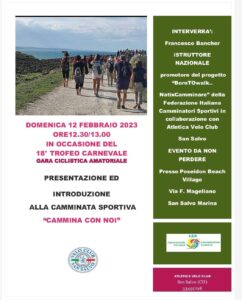 Conto alla rovescia per il Trofeo Carnevale, la consueta gara ciclistica amatoriale di inizio stagione con svolgimento a San Salvo domenica 12 febbraio. Per quel che concerne l’organizzazione nel dietro le quinte, tutto sta filando per il verso giusto in seno all’Atletica Velo Club San Salvo che da quest’anno amplia il suo raggio d’azione non solo sul ciclismo amatoriale ma anche in ambito podistico. E proprio in occasione dell’evento che taglia il traguardo della diciottesima edizione si conoscerà anche questa nuova branca del direttivo dedicata al podismo e alla camminata sportiva che susciterà interesse per gli amanti di questa attività. In occasione delle premiazioni della gara ciclistica, ci sarà un momento dedicato alla presentazione e all’introduzione della camminata sportiva “Cammina con noi” in presenza di Francesco Bancher (istruttore nazionale e promotore del progetto “Born to Walk, NatiXCamminare” in seno alla Federazione Italiana Camminatori Sportivi). Il cronoprogramma del Trofeo Carnevale di ciclismo su strada prevede alle 9:00 la partenza della gara femminile (7 giri di 3 chilometri cadauno), alle 10:00 lo start per i master 5-6-7-8 (13 giri) e alle 11:00 l’ultima dedicata agli élite sport e ai master 1-2-3-4 (15 giri).