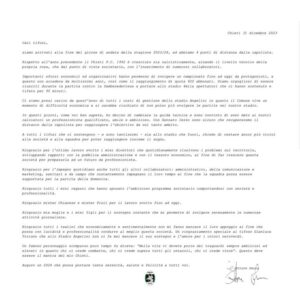 Bella iniziativa. Il patron del Chieti, Ettore Serra, ha inviato oggi 31 dicembre una lettera aperta ai tifosi neroverdi. Vi si tratteggia un bilancio dell’anno che sta per finire: si pone l’accento sulla crescita della società che tra l’altro ha assunto la gestione dello stadio Angelini, sul miglioramento qualitativo della rosa, sull’impegno di quanti (direttori e collaboratori) operano nel club. Serra non manca di sottolineare le ragioni della svolta tecnica recentemente decisa e formula inoltre i propri ringraziamenti a Chianese e al suo staff per il lavoro svolto. Infine il patron delinea la strada da percorrere nell’anno nuovo, quella che si spera possa condurre al risultato da tutti auspicato. In chiusura gli auguri di buon anno al popolo neroverde.