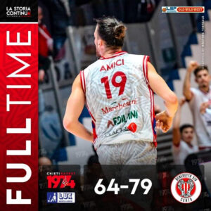 [vc_row][vc_column][vc_column_text]Brutta sconfitta casalinga della Lux Chieti contro la Tramec Cento questa sera al Palatricalle “Sandro Leombroni” (64-79). Già all’intervallo lungo i biancorossi erano in forte ritardo (29-40) e nelle successive due frazioni di gara Meluzzi e compagni non sono riusciti ad invertire la rotta. Brutta prestazione da parte della squadra di coach Maffezzoli, ora la classifica comincia a farsi preoccupante.