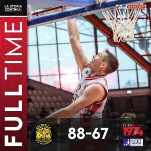E’ finita 88-67. Larga la vittoria di San Severo sulla Lux Chieti stasera nel primo dei tre recuperi in programma per i biancorossi di coach Maffezzoli. Questo il dettaglio delle quattro frazioni: 23-26 / 26-16 / 16-19 / 23-6. Dai parziali si vede come nel finale si è registrato il netto crollo della Lux, quello che in fondo si temeva. E’ mancata la tenuta atletica dopo settimane di forzato stop causa covid, la quarantena ha imposto un programma di lavoro assolutamente anomalo e la squadra ha mostrato di non poter reggere sulla lunga distanza. Le energie sono totalmente mancate nell’ultimo tratto del match.