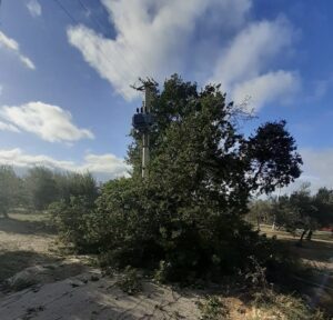 Via Colle Minazzo, ex via delle Querce /via sp 524 ovest con richiesta intervento VV.FF ed Enel distribuzione per il grosso albero caduto con tranciatura cavi elettrici, strada