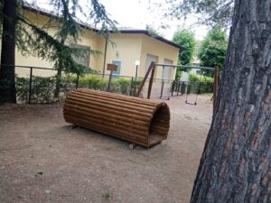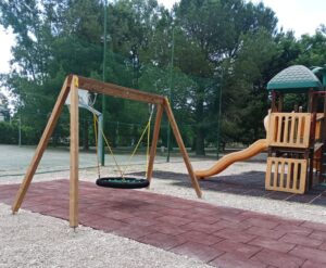 Nel parco in via Saline, zona Brecciarola, dopo aver rimosso la vecchia struttura, è stata installata una torre composta da due piani di gioco con scivolo; una giostra inclusiva a forma di fiore con un sedile più lungo dotato di maniglione che funge da schienale che favorisce l’accesso e lo stazionamento ad utenti con mobilità ridotta; una struttura statica per il gioco collettivo e la socializzazione dei bambini costituita da un grande tunnel sollevato da terra, che per la sua robustezza può essere usata anche come arrampicata dai più piccoli.