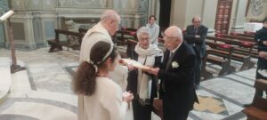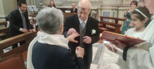 Un giorno davvero speciale per il maestro Giuseppe Pezzulo e la professoressa Anna Maria Rapposelli, che questa mattina nella Chiesa Parrocchiale di Sant’Agostino, dinanzi al parroco Don Michelangelo Tumini, si sono detti nuovamente “Si”, rinnovando la promessa matrimoniale di “amore eterno” di 50 anni fa, sempre nella Chiesa di Sant’Agostino sugellata dalla benedizione di Don Alberto Rainaldi.