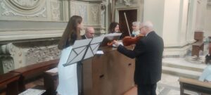 Hanno allietato la cerimonia religiosa l’organista Gabriele Di Marco, la violinista Melody Di Paolo e la soprano Maria Rita D’Orazio, amici speciali del maestro Pezzulo nella vita e nella passione per la sua adorata musica.