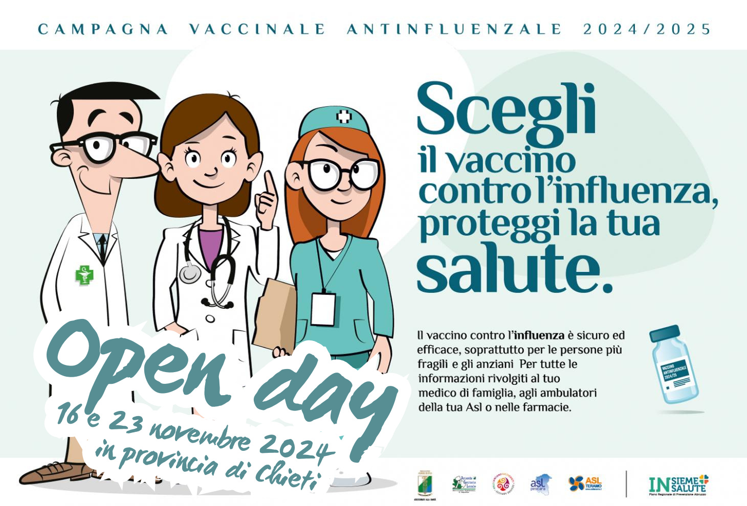 Per facilitare l’accesso alla campagna di vaccinazione antinfluenzale, anti-Covid e anti-pneumococcica, la Asl Lanciano Vasto Chieti ha organizzato due giornate di open day nei centri vaccinali del Servizio igiene epidemiologia e sanità pubblica (Siesp). I cittadini della provincia di Chieti potranno vaccinarsi senza prenotazione nelle seguenti date: