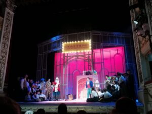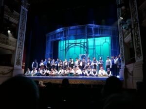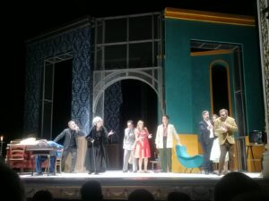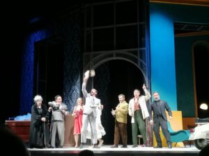 giocolieri ed il fascino inquieto dei clown permettono un coinvolgimento maggiore. Siamo di fronte ad un adattamento classico, ben misurato, perfettamente in linea con il periodo di composizione dell’opera ed i rimandi letterari. Completamente diverso, per toni musicali, scenografici e drammaturgici è “Gianni Schicchi” che pur mantenendo la regia di Voleri, segna un distacco netto sia dal soggetto di partenza, lo scambio di persona commesso dall’omonimo dannato citato da Dante Alighieri nel trentesimo canto dell’Inferno reinterpretato in una versione romanzata, e sia dal contenuto del dramma precedente. Questa è un’ opera divertentissima che ruota intorno agli imbrogli di Gianni Schicchi ai danni dell’avida e snob famiglia Donati, la quale cerca a tutti i costi di impadronirsi del patrimonio di un parente defunto, patrimonio che verrà ereditato dal protagonista grazie ad uno stratagemma. Nonostante l’ambientazione originale sia per forza di cose medievale, il regista ha scelto un allestimento moderno che richiama l’estetica anni sessanta. Una decisione che potrebbe far storcere il naso ai puristi ma che non guasta di certo la visione. A dirigere l’orchestra, il Maestro Gianna Fratta, una delle più grandi. È davvero un privilegio vederla nel nostro teatro. In conclusione, posso affermare che “Pagliacci” – “Gianni Schicchi” si è rivelato essere una carta vincente oltre che una splendida sorpresa.