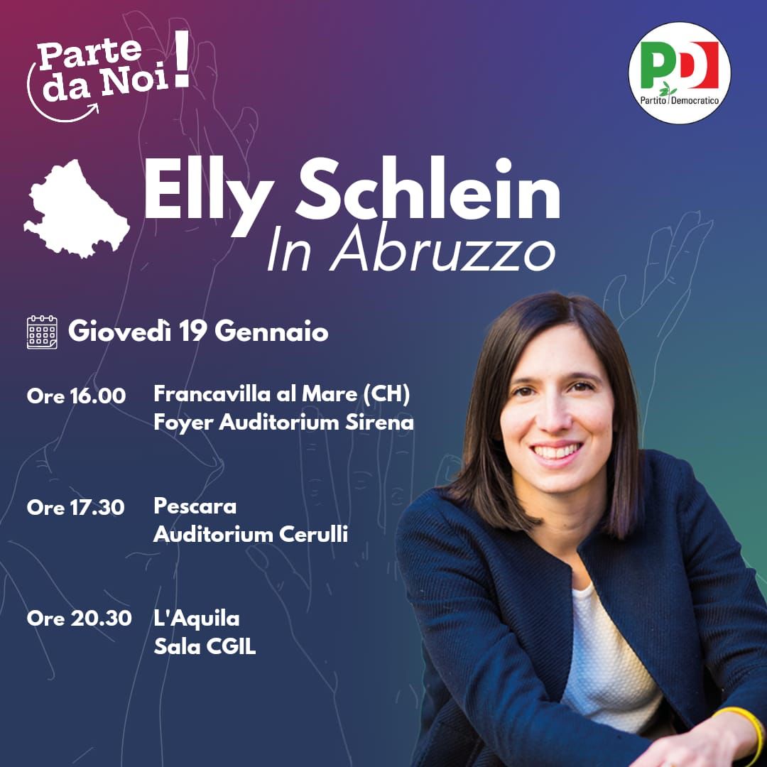 Elly Schlein, candidata alla segreteria del nuovo Partito democratico, nell’ambito del suo “ tour” abruzzese, sarà a Francavilla al Mare domani 19 gennaio alle ore 16.00 presso il foyer dell’Auditorium Sirena, per incontrare e confrontarsi con le associazioni del territorio. Saranno infatti presenti le associazioni culturali e di promozione sociale della città. L’incontro sarà occasione per ufficializzare il comitato pro Schlein di Francavilla al Mare che vede già l’adesione di numerosi esponenti del Pd locale tra i quali Cristina Rapino, Assessore alla Cultura del Comune e presidente provinciale del Pd , Andrea Catena, componente dell’Assemblea nazionale e della Segreteria regionale del Pd, Giovanni Battista Natale avvocato e già assessore della Giunta Luciani, e componente del Direttivo, Paride Di Lorenzo, avvocato e componente del direttivo del circolo, Mario Gallo, insegnante e consigliere comunale del Pd, Claudio Ciofani componente del direttivo del circolo, Maurizio Paludi musicista e componente dell’Assemblea provinciale del Pd, Nicola Piattelli imprenditore, Eleonora Insolia, medico specializzata in nutrizione clinica e specializzanda in genetica medica, Isabella Insolia, dottoressa e critica cinematografica, Clarissa Insolia, avvocato specializzata in diritto dello spettacolo. Le adesioni sono aperte a tutti coloro che vogliono sostenere Elly Schlein e le sue idee per cambiare il Paese, per il lavoro, per la giustizia sociale e climatica, con un nuovo Partito democratico più aperto ed inclusivo.
