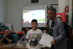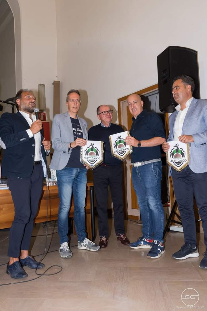 A conclusione della bella serata un premio, l’artistica targa di Stefania Santone, è stata consegnata al Comitato per il Centenario del Chieti (1922/2022), ritirato dal presidente Stefano Marchionno, accompagnato dagli altri componenti Marco Falasca, Antonio Lancioni e Franco Zappacosta. Riconoscimento assegnato per le tante iniziative di successo realizzate nei primi sei mesi del centesimo anno di vita della squadra neroverde.