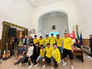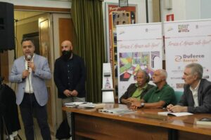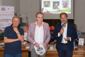Primo appuntamento ieri sera, a Guardiagrele, con la kermesse “Terrazza d’Abruzzo sullo Sport”. L’evento inaugurale è stato dedicato al calcio, si prosegue questa sera (Belvedere Santoleri), con il ciclismo al centro della seconda puntata, grande conclusione sabato (piazza San Francesco) con la premiazione di tanti personaggi dello sport, uomini e donne. Ieri la pioggia ha costretto a trovare… riparo, da Piazza Santa Maria Maggiore, nella sala consiliare del Comune, il cambio della location è stato ben gestito dall’organizzazione del Centro Studi “Sport e Valori” di Luigi Milozzi e Orlando D’Angelo. Ha fatto gli onori di casa in modo impeccabile il sindaco di Guardiagrele, Donatello Di Prinzio, che ha ricevuto gli ospiti insieme con la vice Flora Bianco, gli assessori Erika Pica, Orlando Console, Pierluigi Dell’Arciprete e il delegato allo sport Alessandro Orlando. La serata ha proposto una serie di premiazioni ed una parte caratterizzata da un talk nel quale hanno trovato spazio libri dedicati a storie e protagonisti del calcio, presenti gli autori. Conversazione condotta dal giornalista Nando Di Giovanni e dall’ex calciatore Gianluca Colonnello.