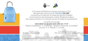 Si svolgerà domani l’evento conclusivo di “Scuole sicure”, progetto che unisce Comune e Polizia Municipale, con la collaborazione della Prefettura di Chieti, per la tutela dei giovani cittadini, per la prevenzione e il contrasto all’uso di sostanze stupefacenti. L’appuntamento è per le ore 10,30 all’Auditorium Cianfarani del museo La Civitella, dove gli interventi istituzionali e riassuntivi delle attività saranno moderati da Antonello Angiolillo, direttore artistico del progetto. “Si tratta di un progetto che mette insieme prevenzione e conoscenza sulle tossicodipendenze – dice il sindaco Diego Ferrara – di questo ringraziamo la Prefettura e anche la Asl per la sinergia profusa allo scopo, tanto delicato anche perché i destinatari del progetto sono i nostri giovani. L’anno trascorso attribuisce un valore ancora maggiore alle attività portate avanti secondo le modalità che la pandemia ha imposto alla nostra vita lavorativa, didattica, istituzionale e anche relazionale. Ringrazio anche le scuole superiori cittadine che hanno recepito la finalità e non hanno fatto mancare la propria collaborazione, seguendo, con i ragazzi, un percorso formativo e informativo che qualifica la nostra Polizia Municipale e le azioni svolte proprio sulle scuole sulla scorta del progetto”.