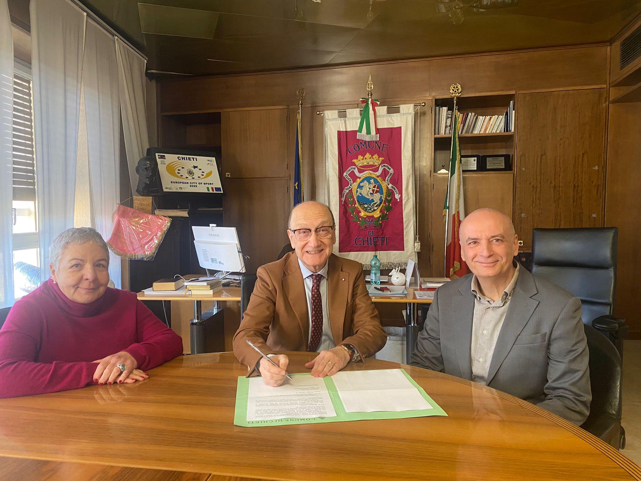 Rinnovato il protocollo d’intesa fra Comune e Casa Circondariale di Chieti sui percorsi di pubblica utilità nella manutenzione e recupero del patrimonio pubblico e ambientale, così continua il cammino della rete per l’inclusione sociale delle persone con fragilità sottoposte ad esecuzione penale della città di Chieti. Oggi la firma da parte del sindaco Diego Ferrara e del direttore della Casa Circondariale di Chieti Franco Pettinelli, in presenza della neo assessora alle Politiche sociali Alberta Giannini.
