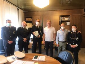 Il sindaco Diego Ferrara, con la comandante della Polizia Municipale Donatella Di Giovanni, ha ricevuto in Comune gli agenti della Polizia Municipale che il giorno di Natale 2020 hanno salvato la vita allo psichiatra teatino Maurizio Centofanti, colto da infarto mentre faceva sport in strada ed ha consegnato loro una pergamena di pubblico ringraziamento, insieme al dottor Maurizio Centofanti, la persona che nel pomeriggio del 25 dicembre scorso a Filippone è stata soccorsa e accompagnata in ospedale dalla pattuglia composta dal vicecomandante Fabio Primiterra e dagli Appuntati Antonio Di Martino e Valentino Valente. “Siamo davvero lieti di poter celebrare questa piccola riunione nelle stanze del Comune – ha detto così il sindaco Ferrara – per dare un pubblico grazie ai nostri agenti che con determinazione hanno agito e salvato una vita quel giorno e anche per far sì che, superata la difficoltà, tutti gli attori di questa storia potessero stringersi la mano e scambiarsi ricordi e ringraziamenti. I nostri sono stati bravi ad aver intuito subito la gravità delle sue condizioni, caricandolo nell’auto di servizio per condurlo a sirene spiegate in ospedale, dove è stato subito accolto e salvato. Una storia a lieto fine, che ci rende orgogliosi, perché la vita è un bene prezioso, come lo è il tempo di tutti: la presenza e la determinazione dei nostri agenti della Polizia Municipale ne ha onorato l’importanza, dando alla nostra città ragione di essere orgogliosa di chi, ogni giorno, si mette a servizio degli altri e fa del suo dovere un bene prezioso per tutta la comunità”. “Grazie a loro io posso raccontare quello che è accaduto – ha detto il dottor Maurizio Centofanti, che ha consegnato agli agenti una targa con i nomi di tutti e tre come segno di ringraziamento – Facevo attività sportiva in strada, camminando, quando ho cominciato ad avvertire uno strano malessere e ho deciso di chiamare mio figlio Francesco che stavo raggiungendo chiedendogli di scendere. Una volta insieme lui mi ha chiesto lumi su cosa dovesse fare per affrontare la situazione e abbiamo chiamato l’ambulanza. Nell’attesa che arrivasse, eravamo peraltro in un momento drammatico dell’emergenza covid, le mie condizioni non miglioravano, quando è passata la pattuglia, lui ha fatto cenno di fermarsi e data la gravità della situazione mi hanno trasportato in auto in ospedale. Ci ho messo del tempo per elaborare la mia rinascita e affrontare l’emozione di questo ricongiungimento con chi mi ha di fatto salvato la vita. Questo è il momento giusto per stringerci la mano e dire grazie a chi ha contribuito a darmi una nuova opportunità di vita, perché se fossi rimasto a terra avrei avuto veramente poche chanche di farcela”. “Un’emozione per tutti – raccontano vicecomandante Fabio Primiterra e dagli Appuntati Antonio Di Martino e Valentino Valente – ma anche un grande sollievo, oggi, stringerci la mano. Eravamo di pattuglia e abbiamo capito subito che quello che da lontano sembrava un semplice saluto, poteva essere una richiesta di soccorso. In quel momento l’unica cosa che abbiamo pensato è stata stringere i tempi e cercare di farlo arrivare al più presto in ospedale, anche caricandolo sulla nostra auto di pattuglia. Siamo felici che questa scelta che sentivamo di dover fare, si sia rivelata quella giusta e di trovarci oggi insieme a rendere pubblico il nostro racconto”.