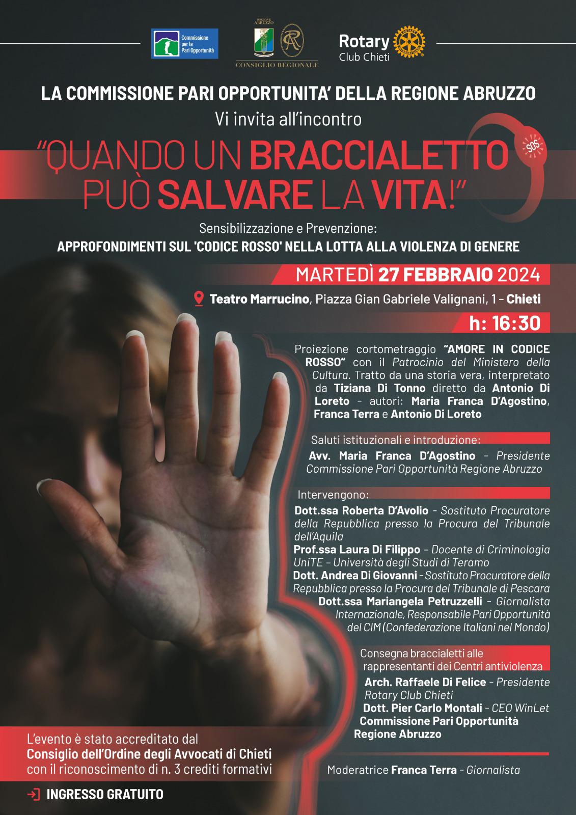 Violenza di genere: domani a Chieti la consegna dei braccialetti antiaggressione