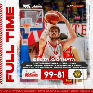 La Mokambo Chieti ha conquistato il secondo successo stagionale al termine di una sontuosa prestazione. Grande affermazione della squadra biancorossa a spese di San Severo, largamente battuta: 99-81 (24-16, 50-37; 72-65). Tra gli uomini di coach Rajola ben cinque sono andati in doppia cifra: Mastellari 22, Vrankic 20, Serpilli 15, Jackson 14, Bartoli 14. Hanno completato il ricco bottino Alibegovic 7, Reale 3, Ancelotti 4 (Boev 0, ne Febbo). Agli ospiti non è bastata una eccellente prova di Daniel (32 punti e 9 rimbalzi)