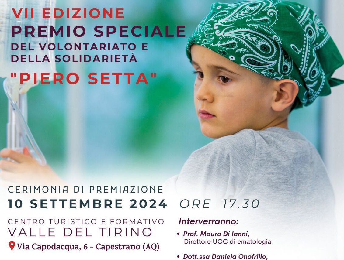 Medici e infermieri dell’Oncoematologia Pediatrica di Pescara ricevono il VII Premio Speciale del volontariato e della solidarietà “Piero Setta”