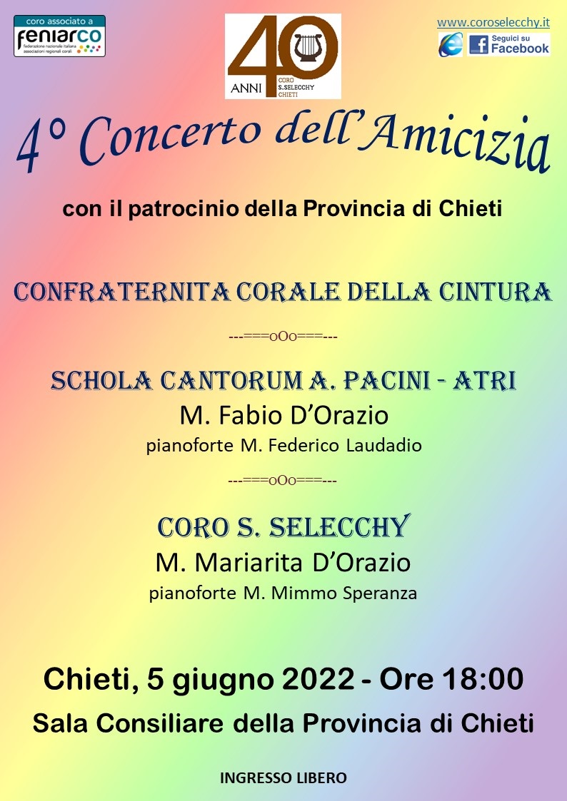 A fare gli onori di casa sarà appunto il Coro Selecchy, che ha promosso l’iniziativa con il Patrocinio della Provincia di Chieti e con l’adesione di Feniarco.