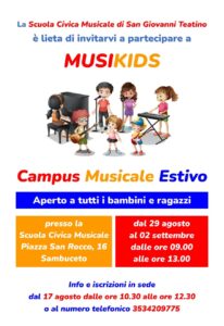 Un’occasione unica che unisce divertimento, amicizia e musica: “Musikids” è il Campus Musicale Estivo della Scuola Civica Musicale di San Giovanni Teatino in piazza San Rocco, 16 a Sambuceto.