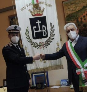 Alla presenza del sindaco Giorgio Di Clemente si è ufficialmente insediato il Capitano Corrado Tomei, nuovo Comandante della Polizia Municipale di San Giovanni Teatino. 42 anni, avvocato e con 15 anni di servizio alle spalle, il Cap.Tomei, alla guida anche delle Polizia Locale di Casoli, prende il posto del comandate Di Pompo che ha lasciato il suo incarico a fine 2021, andando in pensione. “Voglio dare il benvenuto e fare i miei auguri di buon lavoro al Comandante Tomei” – interviene orgoglioso il Sindaco Giorgio Di Clemente, “per il ruolo importante e delicato che andrà a svolgere al servizio della nostra città. Sono certo che porterà avanti il suo incarico con determinazione e professionalità grazie alla sua esperienza. Come amministrazione comunale il nostro pieno appoggio, come lo è da sempre, all’intero operato della nostra Polizia Municipale, per un costante lavoro in sinergia. Approfitto di questo momento anche per rinnovare il mio ringraziamento al suo predecessore, il Comandate Lorenzo Di Pompo, per il suo prezioso e attento lavoro negli ultimi setti anni al servizio della nostra comunità” “Assumo questo incarico” – spiega il neo Comandate – “con grande responsabilità e spirito di servizio a favore della Città. L’attività del Corpo sarà indirizzata su molteplici fronti: dalla presenza sul territorio alla sicurezza della circolazione e la tutela degli utenti deboli della strada; dal controllo sul rispetto dell’ambiente al rispetto delle norme anti contagio, nell’attuale periodo che stiamo vivendo. Sono certo di poter contare su un Corpo, composto da uomini e donne, che giornalmente è al servizio della città”.