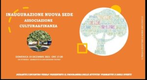 Una nuova realtà associativa prende forma a San Giovanni Teatino, precisamente in via Petrarca a Sambuceto, domenica 19 dicembre alle ore 17: “Cultura&Finanza” avrà la sua sede fisica nella quale svolgere le proprie iniziative e attività.