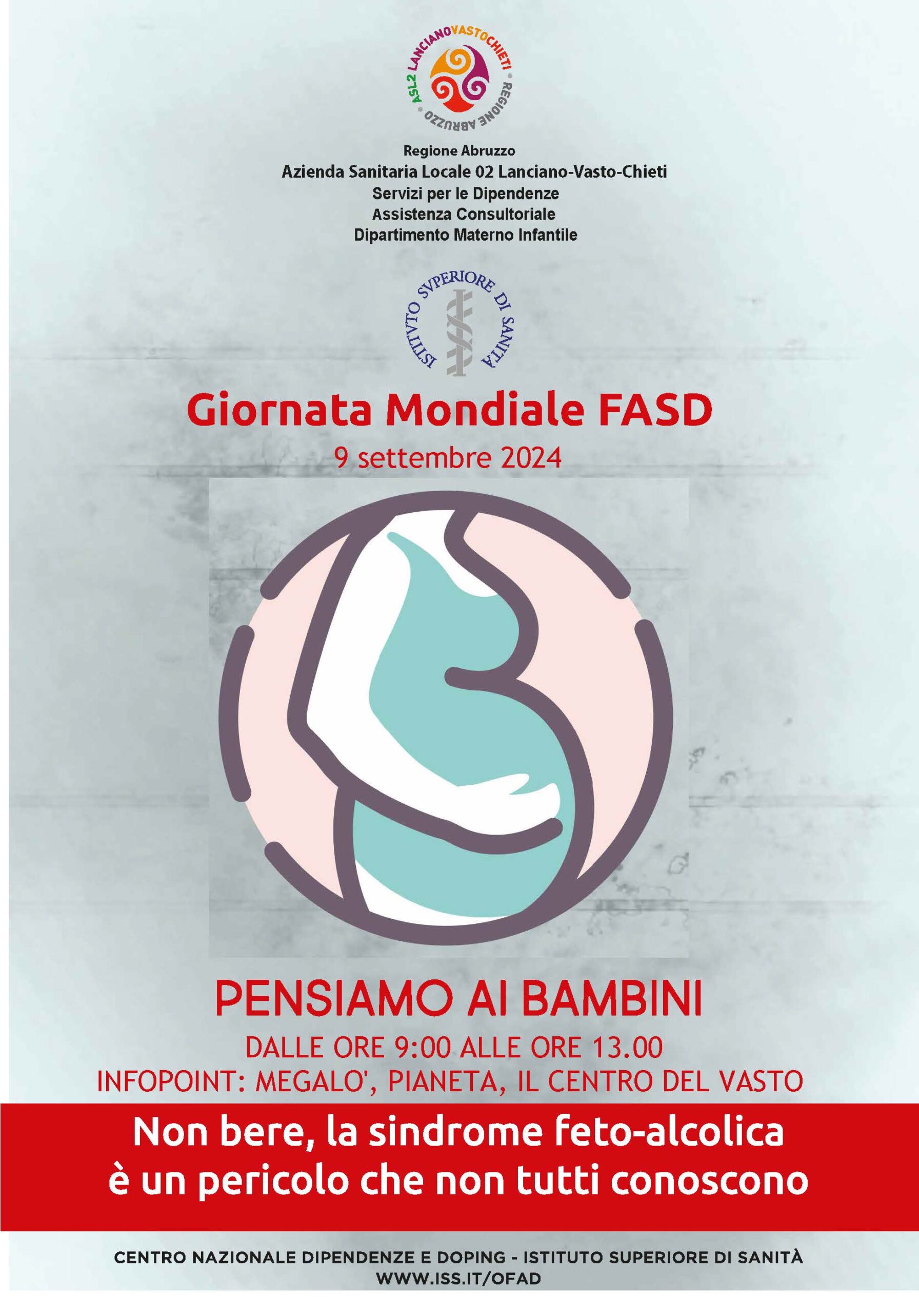 Al fine di sensibilizzare la popolazione femminile in particolare sul fattore di rischio alcool, lunedì 9 settembre saranno allestiti info point presso i Centri Commerciali di Lanciano, Vasto e Chieti. Dalle ore 9.00 alle 13.00 il personale dei Servizi per le dipendenze, Assistenza Consultoriale e Dipartimento Materno-Infantile sarà a Megalò, Centro Commerciale del Vasto e Centro Commerciale Lanciano per dare informazioni sulle conseguenze di comportamenti che possono essere dettati da inconsapevolezza e superficialità, mettendo in pericolo la salute e il corretto sviluppo del nascituro.